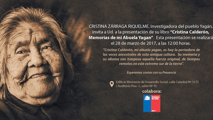 SANTIAGO.- En el marco de la iniciativa de revitalización de la Lengua del Pueblo Yagán, se realizó el lanzamiento del libro "Cristina Calderón, Memorias de mi abuela Yagán", escrito por Cristina Zarraga, investigadora y nieta de la protagonista.