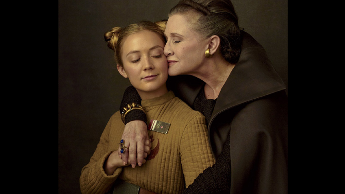 Es así como se puede ver a Daisy Ridley, Mark Hamill, John Boyega y a la fallecida Carrie Fisher posando para la connotada artista. Asimismo, se exponen por primera vez los roles de Benicio del Toro y Laura Dern.