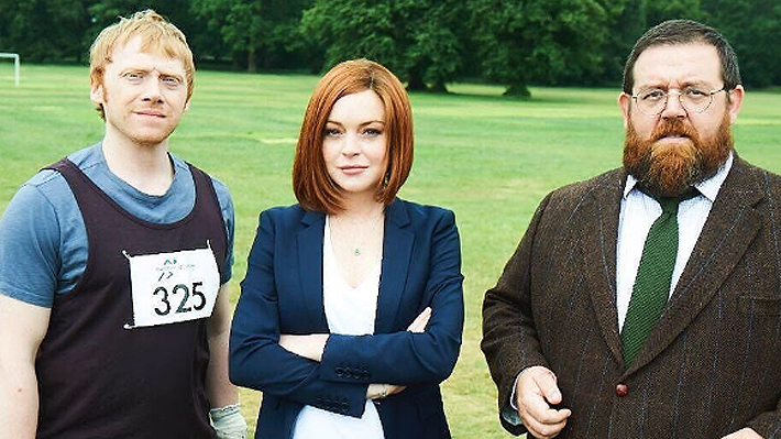 Lindsay Lohan junto a Rupert Grint y Nick Frost.