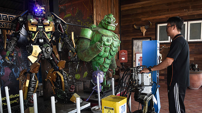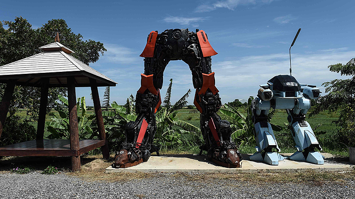 Las estatuas de los Transformers proceden del taller de un artista tailandés, Pairoj Thanomwong, conocido en el extranjero por sus obras de metal.