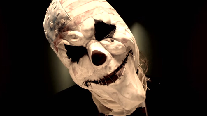 El clip de 15 segundos muestra un montón de globos blancos mientras la cámara avanza hasta llegar a uno rojo. Este último se revienta y deja ver a un hombre con una máscara de payaso que tiene la bandera estadounidense en la frente.