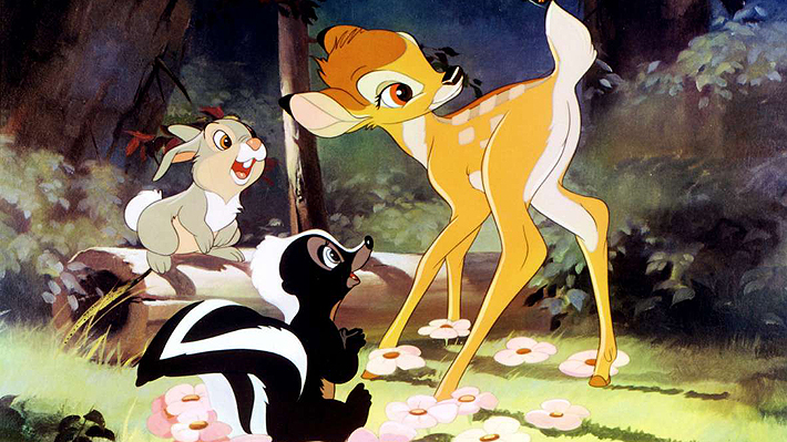 Acompañado del conejo Tambor y de la mofeta Flor, Bambi va descubriendo las bellezas y desafíos del bosque, hasta que crece y se convierte en su rey. La gran tragedia que ningún niño olvidará al verla es el momento en que el cervatillo comprende que su madre ha muerto por el disparo de un cazador.