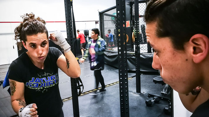 "Maca Orellana es una campeona panamericana de kick boxing, y aparte es profesora de historia. Al mismo tiempo, ayuda a que niños en riesgo social entren a la universidad y cumplan sus sueños, e imparte clases gratuitas de defensa personal para mujeres violentadas. ¡Es admirable!", dice la fotógrafa.