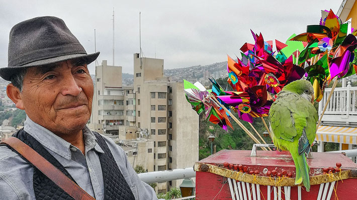 SANTIAGO.- "El sonido nos lleva al Paseo Atkinson en Valparaíso. Ahí, mirando hacia la bahía, se encuentra don Claudio Cortés, un clásico personaje del puerto quien a diario, y por más de 40 años, ha llenado de melodías los rincones de los cerros de Valparaíso. Nos cuenta que su organillo es alemán de los originales, y que tiene más de 100 años de funcionamiento. El "Tío Yevo", como es conocido, es de la cuarta región. El amor lo trasladó a Valparaíso en el año 1973. Desde entonces, se ha encargado de deleitar con su organillo".