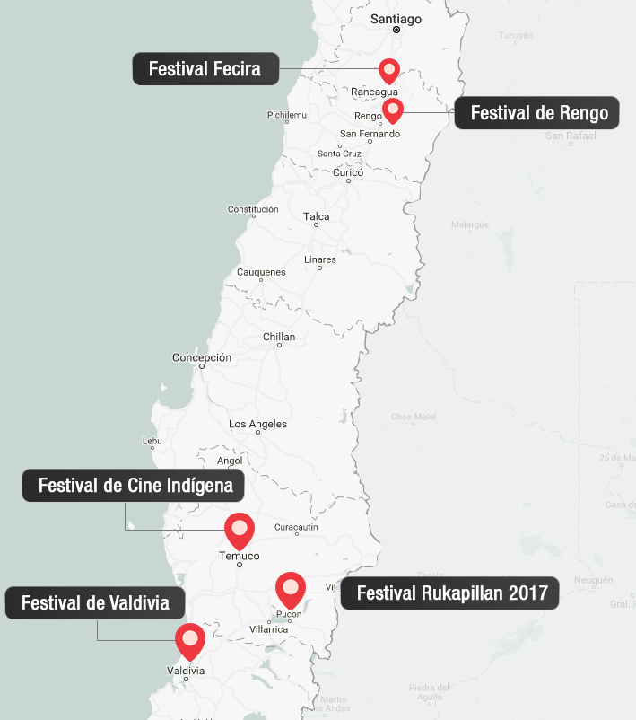 El festival de cine chileno en la Araucanía se celebra desde el año pasado en Pucón y Villarica. Este año también llegará a las localidades de Curarrehue, Lican Ray y Coñaripe. En esta segunda edición, se exhibirán importantes producciones nacionales como "Mala Junta" de Claudia Huaiquimilla, "El cristo ciego" de Cristopher Murray y "El viento sabe que vuelvo a casa" de José Luis Torres Leiva. Además de algunas cintas que fueron parte de la última edición de Sanfic, como "Robar a Rodin" y "Reinos". También incluye una competencia de largometrajes nacionales y un laboratorio de creación para cineastas.