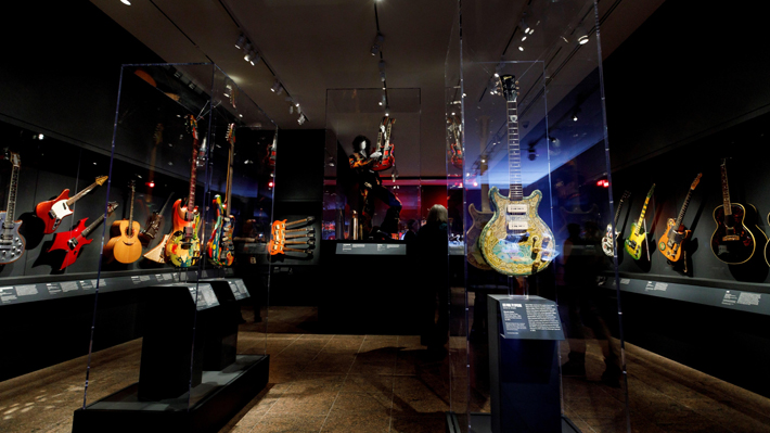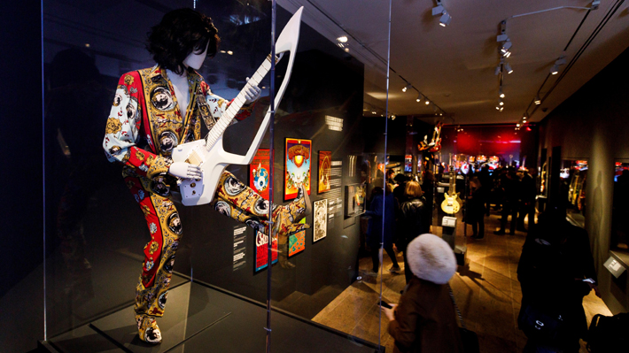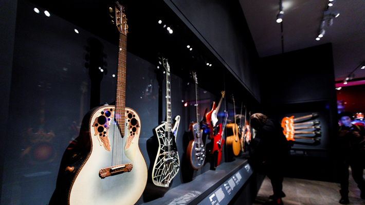 Los visitantes podrán sumergirse en el universo al que remiten esos instrumentos gracias a una pantalla que proyecta solos antológicos, uno de Prince, por ejemplo, y a los altavoces que acompañan musicalmente el recorrido de la exposición.