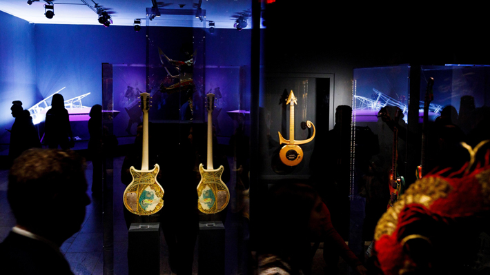 Los instrumentos están entre los objetos más personales que se pueden asociar a los músicos pero, como espectadores, siempre los hemos visto desde muy lejos, en un escenario, durante un concierto", dijo Jayson Kerr Dobney, el comisario de la exposición.