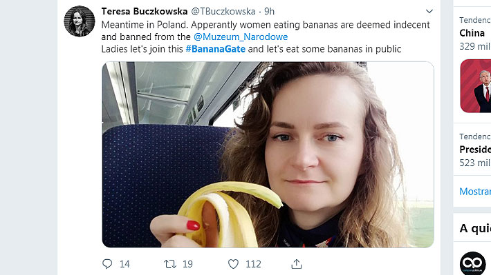 publicaron fotografías en sus redes sociales en las que aparecen comiendo plátanos. Asimismo, para hoy se organizó una protesta colectiva, en la que se comería la fruta delante del museo estatal.