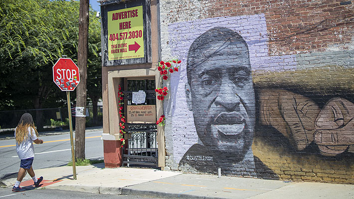 Un mural de George Floyd pintado al costado de un edificio en Atlanta.