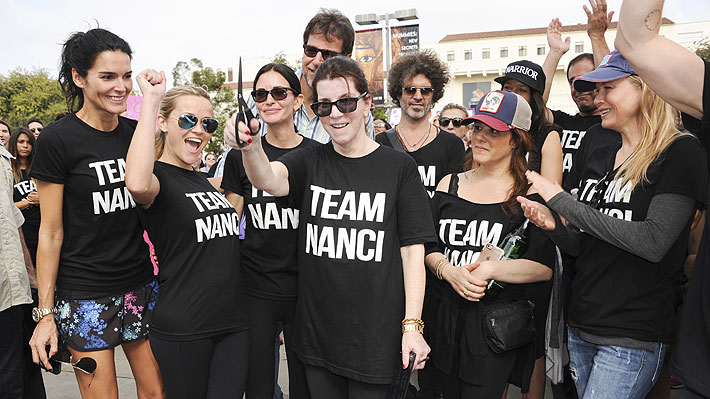Nanci (al centro) rodeada de Reese Witherspoon, Courtney Cox y Renée Zellweger, entre otros, en una fotografía de 2015, al año siguiente de ser diagnosticada con ELA.