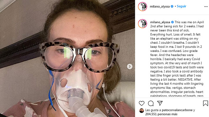 los dolores de cabeza eran horribles", escribió Milano junto a la imagen.