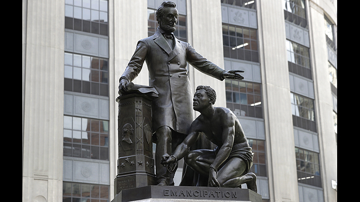 Una estatua de Abraham Lincoln con un esclavo liberado que parece arrodillarse a sus pies -una óptica que generó objeciones en medio de las protestas en Estados Unidos por la injusticia racial-,