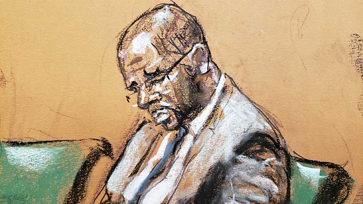 Un bosquejo de R. Kelly durante la primera audiencia del juicio en su contra. Crédito: Reuters.Defensa de R. Kelly: "Él no las reclutó. Ellas eran fans"