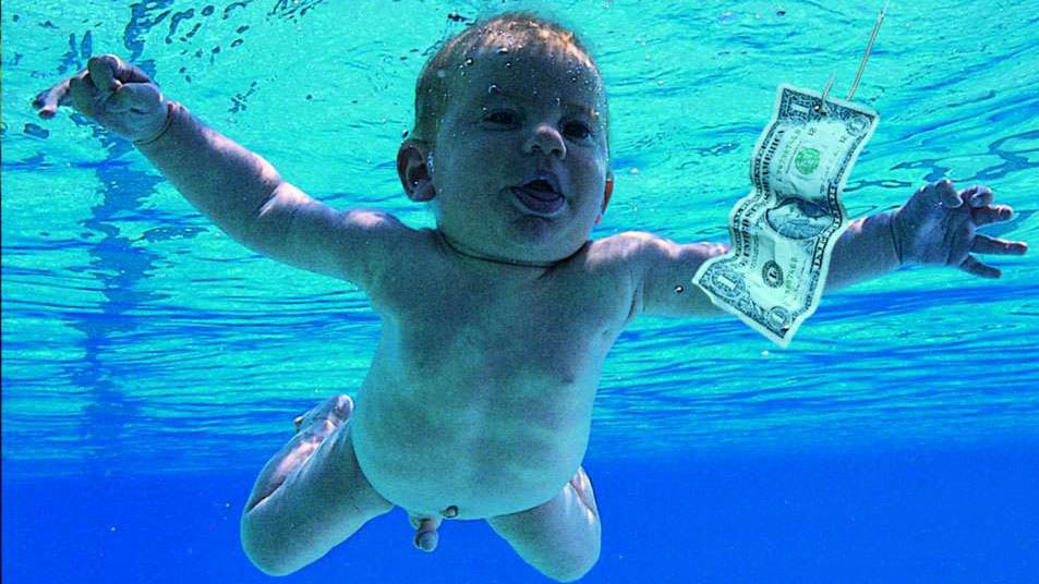 La portada de "Nevermind" está considerada como una de las más icónicas de la historia del rock y muestra a un bebé buceando en una piscina y a la caza de un billete de un dólar.