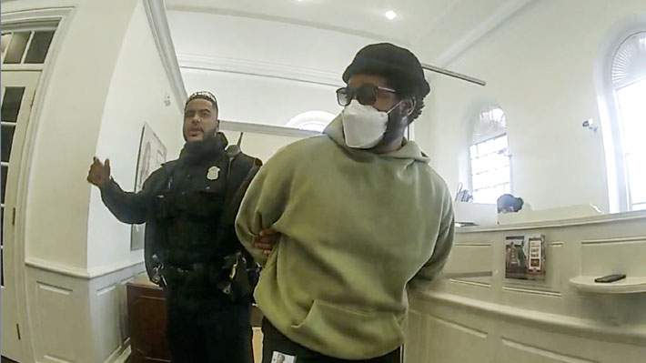 Una descripción de Coogler proporcionada por el conductor coincidía con la descripción del hombre que supuestamente trataba de robar el banco, dice el informe. El oficial detuvo tanto al conductor como a la pasajera en la parte trasera de una patrulla policial, pero no los esposaron. En tanto, otros dos policías entraron al banco y sacaron a Coogler esposado.