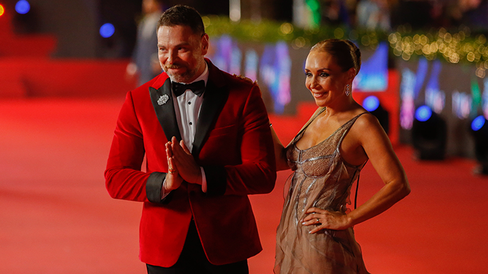 Actor Sergio Chamy junto a la animadora Tonka Tomicic.