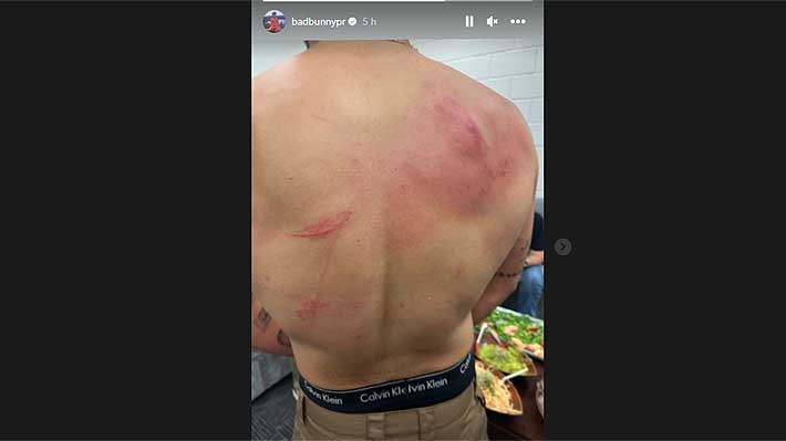 Bad Bunny mostró este domingo el estado magullado de su espalda, tras su victoria en la pelea callejera contra el luchador Damian Priest, celebrada la víspera durante el evento WWE Backlash en San Juan.