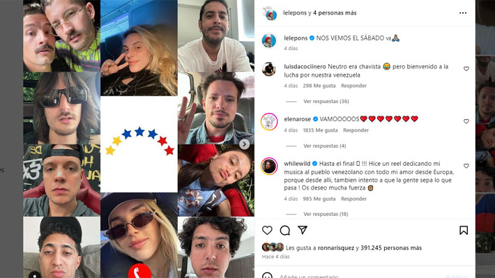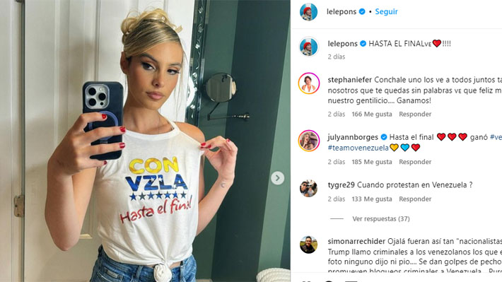 Gracias Lele por dar visibilidad a Venezuela, tú siendo la venezolana más seguida del mundo con más de 50 millones de seguidores significa mucho"; Gracias por alzar tu voz y usar tu plataforma, para darnos visibilidad ante el mundo"; "Gracias Lele"; "Gracias por mantener el tema"; "Gracias por difundir la situación de Venezuela", son algunos mensajes que se pueden leer en la red social.