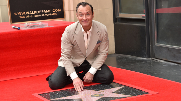 Jude Law con su estrella en el Paseo de la Fama de Hollywood.