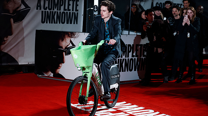 Timothée Chalamet y su particular llegada a la presentación de "Un completo desconocido".