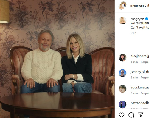Ayer, el dúo compartió una foto en Instagram, en la que se los ve juntos, en un claro homenaje al film de 1989. En aquella imagen, Crystal, de 76 años, lleva puesto un suéter similar al que usa en la película, mientras que Ryan, de 63 años, lleva un blazer, una camisa y un jean, un look parecido al de su icónico personaje.