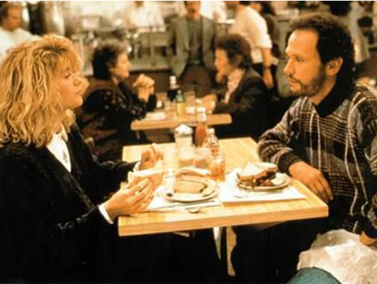 Harry enumera todos los defectos por los que la ama, como que ella se demore una hora en pedir un sándwich, y le dice que fue hasta allí esa noche porque "cuando te das cuenta de que quieres pasar el resto de tu vida con alguien, quieres que el resto de tu vida empiece lo más pronto posible".