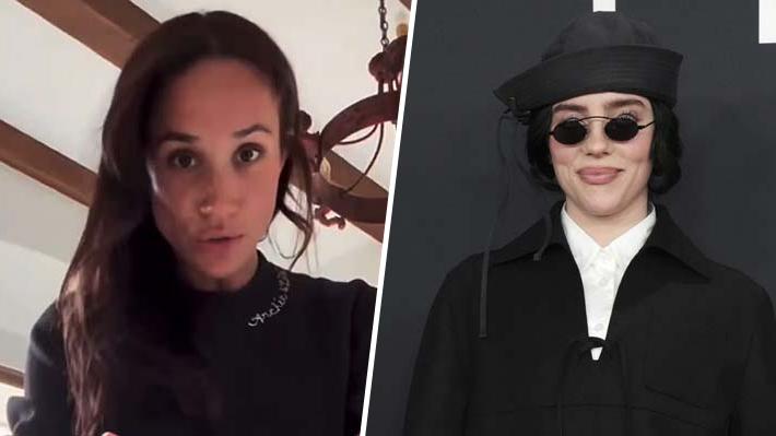 A la izquierda, Meghan contando la historia de la niña en sus redes sociales y a la derecha, Billie Eilish en los Grammys que se llevaron a cabo el domingo recién pasado.