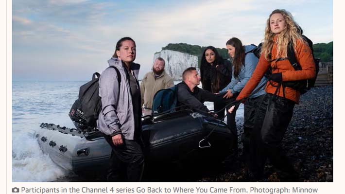 En el primer episodio, uno de los concursantes, Dave Marshall, de 35 años, filmado antes de su salida en los acantilados de Dover, pide a la marina británica bombardear a los migrantes en el Canal de la Mancha.
