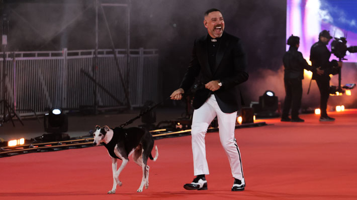 En su primera hora, han sido varias las personalidades que han pasado por la alfombra roja de 80 metros que se desplegó en el recinto hípico. El primero de ellos fue el animador del evento, José Antonio Neme, junto a un galgo rescatado.