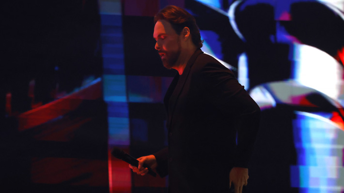 Tenso. Así se puede definir los más de treinta minutos que duró sobre el escenario de la Quinta Vergara el humorista venezolano George Harris.