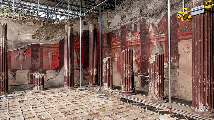 data del siglo I a.C, entre los años 40 o 30 a.C., aunque quedó sepultado por la violenta erupción del Vesubio, como el resto de esta próspera ciudad romana a orillas del Golfo de Nápoles (sur).