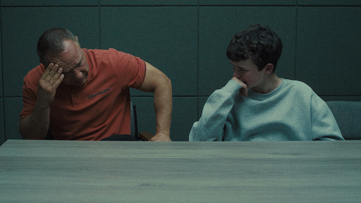 Stephen Graham y Owen Coopera, como Eddi Miller y su hijo Jamie en una escena de "Adolescencia".