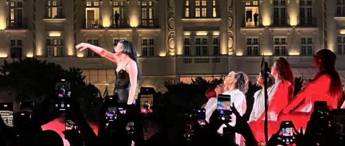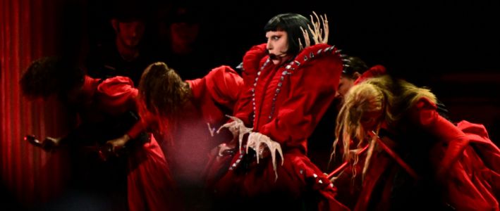 Como por arte de magia aparecieron bailarines hasta ese momento escondidos bajo la falda de la artista para dar vida a enérgicas coreografías, que desataron frenesí en sus 'little monsters'.