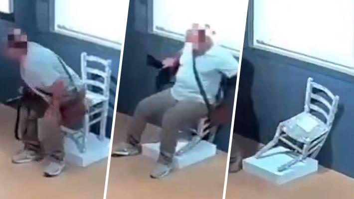 Revisa el momento en que el hombre se sienta y daña la silla