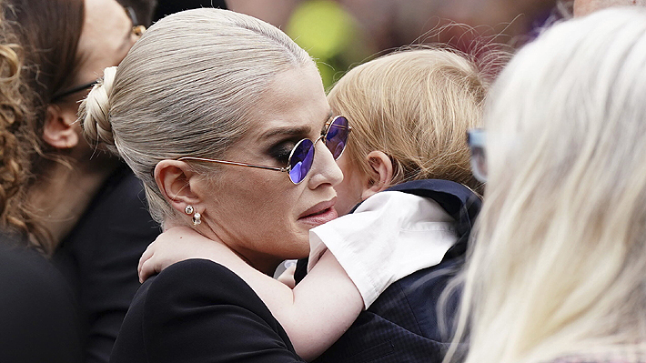 Kelly Osbourne con su hijo Sidney en brazos. Crédito: AP.