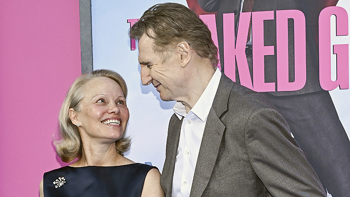 Pamela Anderson (58) y Liam Neeson (73), precisamente los protagonistas del film.