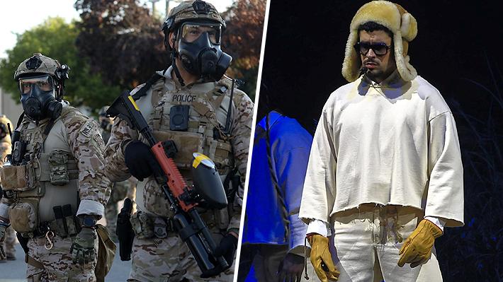 Bad Bunny (derecha) no llevó su gira mundial a EE.UU. ante la posibilidad de que agentes del ICE (izquierda) hicieran redadas en los lugares de sus conciertos.