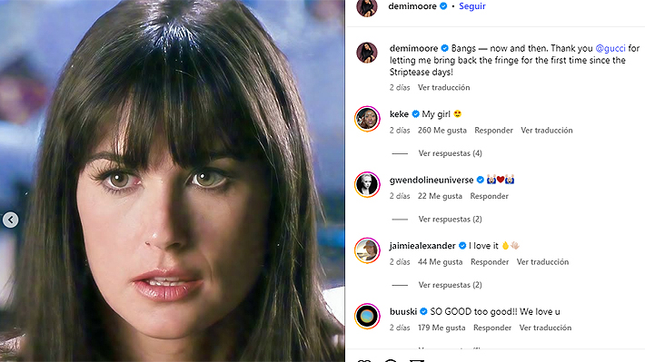 innumerables comentarios de los usuarios, quienes no dudaron en destacar su belleza y bienestar físico a pesar del paso del tiempo. "¡Estás más hermosa que nunca!"; "¡Por un segundo pensé que eras tu hija! ¡Locura de lo hermosa que eres!"; "Me encanta esta chasquilla, muy suave y abre tu cara con el foco en tus ojos. Hermosa como siempre" y "Genial, ahora quiero mi chasquilla de vuelta", fueron algunos de los mensajes.