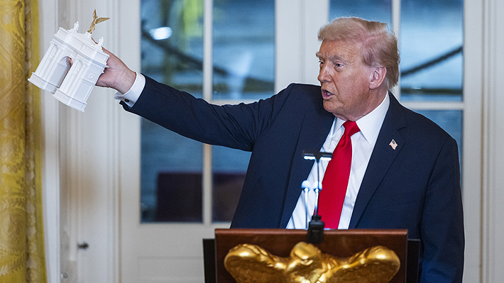 Trump mostró tres modelos de diferentes tamaños del arco, el cual contará con una estatua de la Dama de la Libertad en la parte superior, y reconoció que el más grande era su favorito.