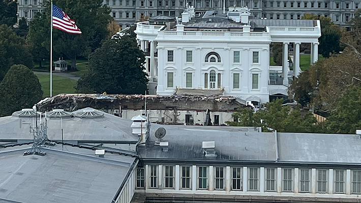 Imagen donde se aprecia la demolición del ala este de la Casa Blanca.