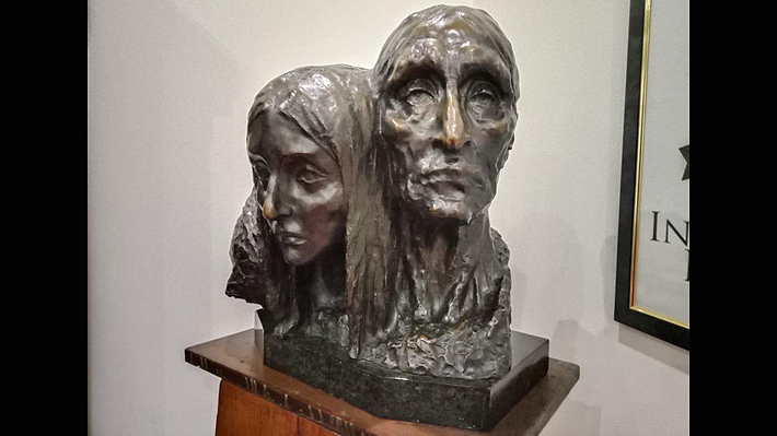 "Due teste", que representa a "dos mujeres, una más joven y la otra más anciana, que nos hacen ver y entender el paso del tiempo", según explicó María Ester González, curadora e investigadora de la vida y obra de Rebeca Matte. El original de esta última se conserva en la Sociedad de Instrucción Primaria, dentro del conjunto titulado "Las edades de la vida".