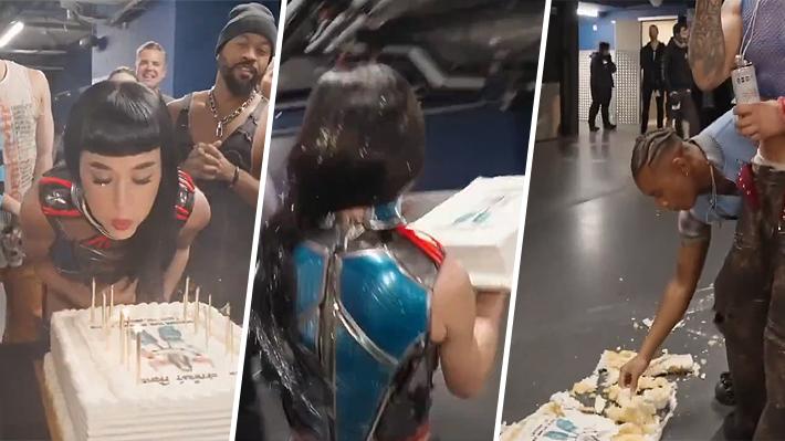 incidente con su torta de cumpleaños, que terminó siendo probada por sus bailarines después de caer al suelo.