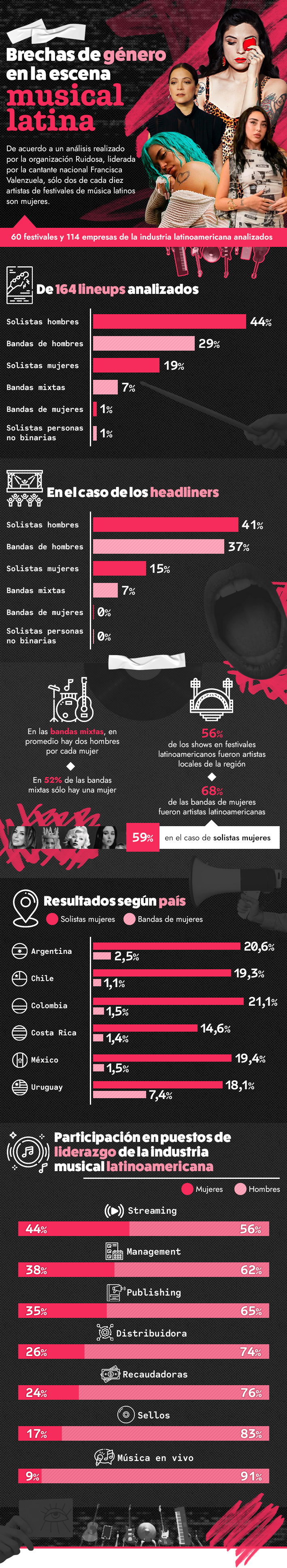 Un análisis de la organización Ruidosa refleja los dispares números de la participación femenina en relación con los hombres en la escena regional.