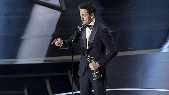 Adrien Brody durante su discurso de aceptación del galardón a Mejor actor en la edición 2025 de los Oscar.