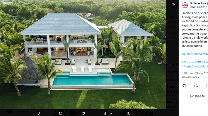 En la casa de Punta Cana, así como en otras de sus propiedades en España y Bahamas, Julio Iglesias habría acosado y abusado sexualmente de dos exempleadas, según una investigación periodística de eldiario.es y Univisión Noticias en Estados Unidos y desvelada este martes.