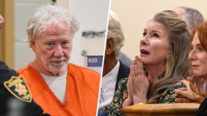 A la izquierda, Timothy Busfield llega a la audiencia en la que un juez dictaminó su liberación. A la derecha, Melissa Gilbert reacciona a la decisión del magistrado.