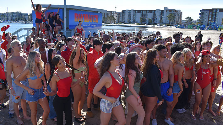 abarrotaron una playa de Los Ángeles con vibrantes trajes de baño rojos con la ilusión de formar parte de la