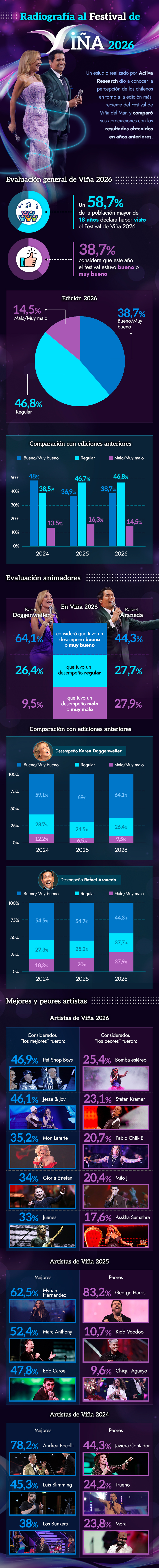 Viña 2026: 38,7% aprobó el Festival y Pet Shop Boys fueron considerados "los mejores" del evento según estudio
