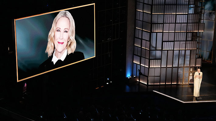 Rachel McAdams habla sobre Catherine O'Hara durante el segmento In Memoriam de los premios Oscar.
