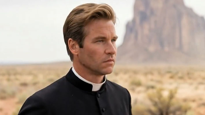 En "As Deep as the Grave", la versión IA de Val Kilmer interpreta a un sacerdote católico.